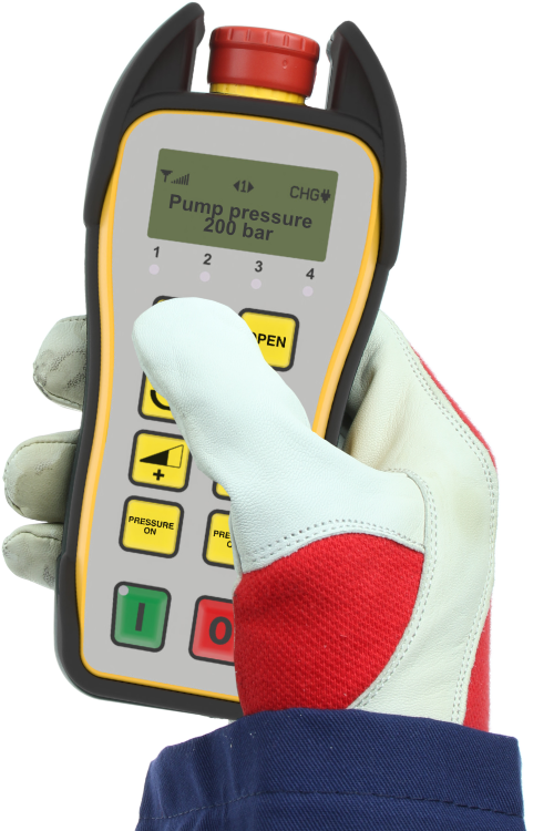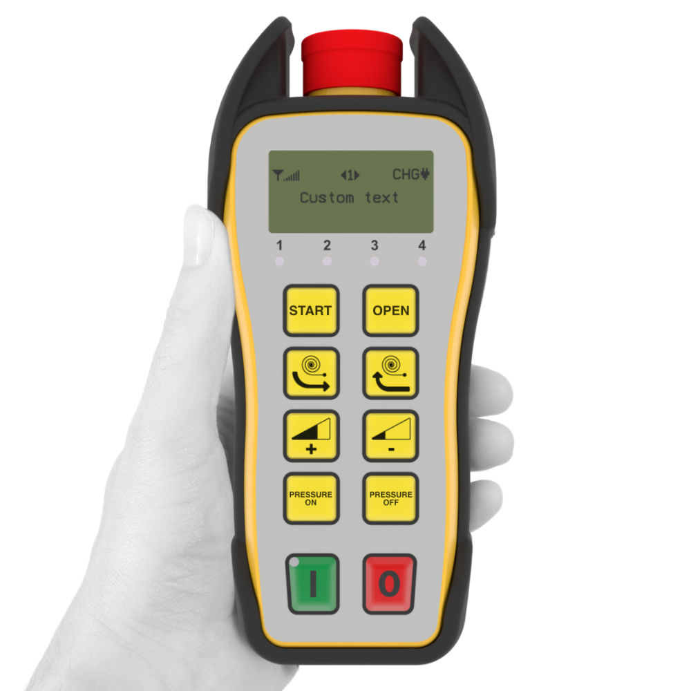 Die TYRO™-Funkfernbedienungen können an alle Arten von Anwendungen angepasst werden. Sie sind so konzipiert, dass sie auch in der industriellen Reinigung optimal funktionieren. Eine Fernbedienung muss intuitiv zu bedienen sein. Standardprodukte sind ab Lager lieferbar. Darüber hinaus können wir unsere Produkte an Ihre Bedürfnisse für jede Anwendung anpassen. Eine zusätzliche Rückmeldung über LED’s oder Display ist optional für diejenigen, die eine Rückmeldung über Werte wie Druck, Wasserstand, Kraftstoffstand oder andere Messwerte benötigen. Beispiele für wählbare Optionen: