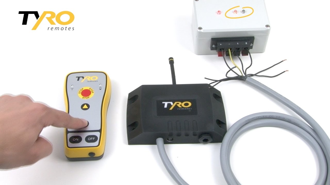 - Schalten Sie den Handsender ein; jetzt erlischt die LED auf dem Empfänger und blinkt gelb.